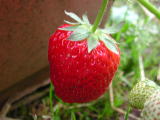 | とれたてのイチゴを食べながらぼーっと庭を眺めて・・・ | |