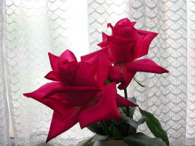 | ロージー・クリスタルが惚れ惚れするほどきれいに咲いたので、 切って部屋に飾りました。自画自賛です。 |