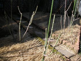 HTとFL、約40鉢を剪定した後、石灰硫黄合剤を散布、そして鉢替え後初めての置き肥・・・