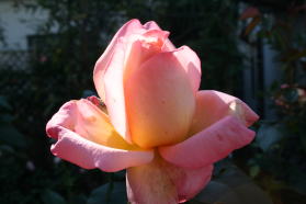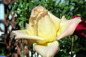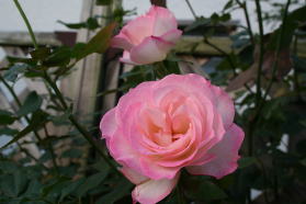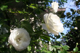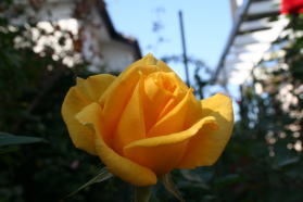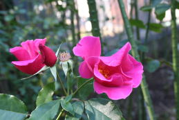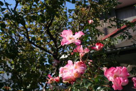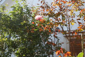 | 初冬のバラも小春日和に輝いています。 |