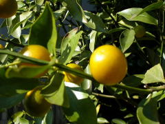 キンカンは摘果の成果で大きな実をつけた