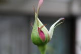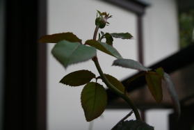 | というのも、暴風で折れたステムでまだ「息のある」ものをビニールテープで手当てして、かろうじて一命を取り留めたバラたちなのです。へたに枝直しをするとポキっといきそうなので、このままそっと花を楽しみたいと思います。 |