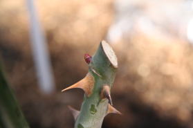 一部の極早咲き品種を除いて1月10日までに剪定を済ませたバラたちは早くも芽が動き出しました。