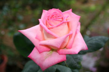 クリームピンク地に濃いピンクの覆輪が美しいバラです。