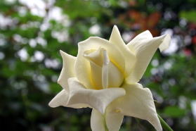 柔らかなクリーム色と端正な花形がうまく調和したとても優雅なバラです。