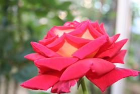 名前にふさわしく、深みのある赤と黄のコントラストが美しいバラで、花もちがよく、散り際まで楽しめます。