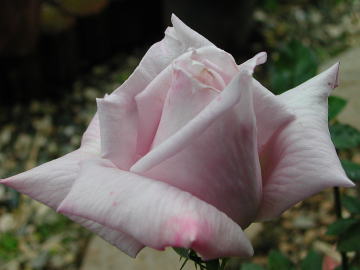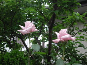 淡い藤色がかったピンクのバラで花の姿形は何となくか弱いのですが、強健で病気にも強く、樹高も2メートルを越えます。