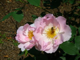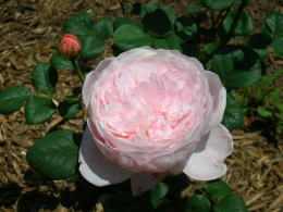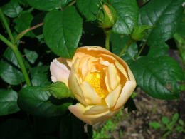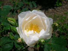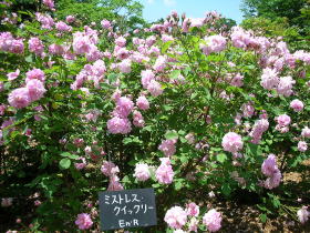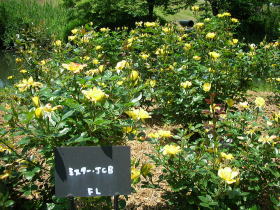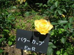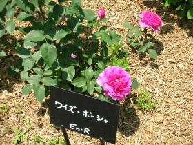 | イングリッシュローズは日本の気候で育てると半つる性状態になる品種が多いのですが、ここのイングリッシュローズはどれも皆コンパクトです。もしかしたら軽井沢の気候のせいかと思い、管理人さんに聞いてみたところ、普通に育てたのではやはり背が高くなってしまうので、冬の剪定を極端に低くする(10cm程)のだそうです。根元から伸びたシュートにもそのまま花を咲かせるとのことです。 |