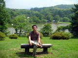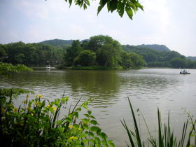 塩沢湖は周囲1kmほど。もともとは湿地帯だったところに昭和36年に造られた人造湖。 |